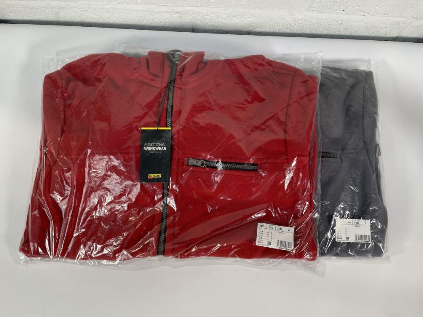 Two Blaklader 4830 Fleece Jackets - Red (M) and Grey (L).