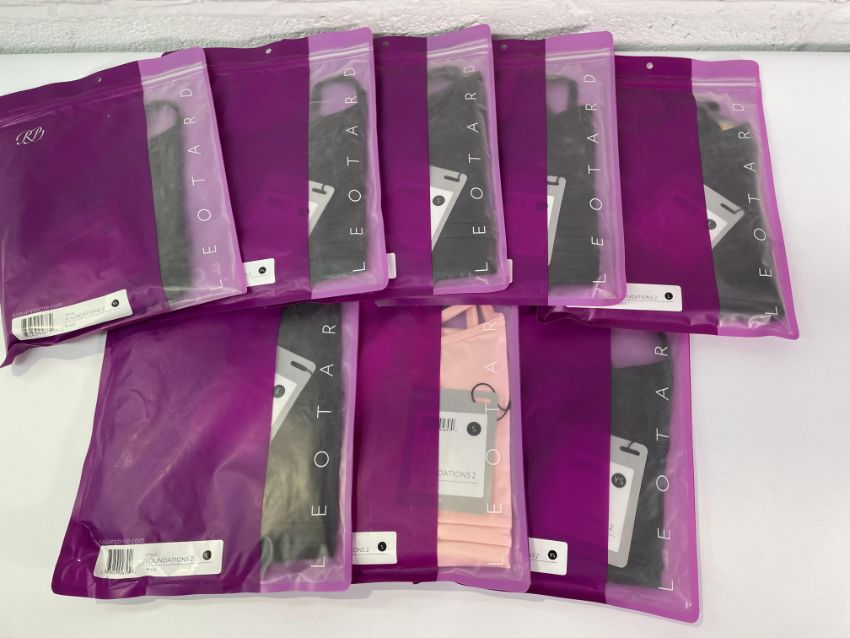 Eight Russian Pointe Foundations 2 Camisole Leotards - Black x 7, Pale Pink x 1 - Various Sizes.
