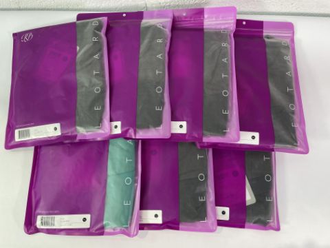 Seven Russian Pointe Clarity Leotards - Black x 6 Various Sizes and Galactic Green x 1 YL.