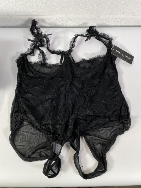Ten Oh La La Cheri Paris Open Cup Crotchless Teddy (4100X) - Black - Size: QU.