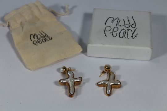 A pair of Mudd Pearl Gold Plated Cross stud earrings with cross drops.