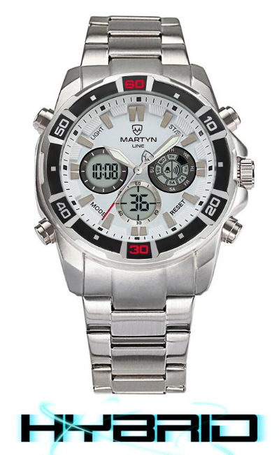 Martyn Line 202 White Multi-Function Hybrid Steel Watch (Stock Image).