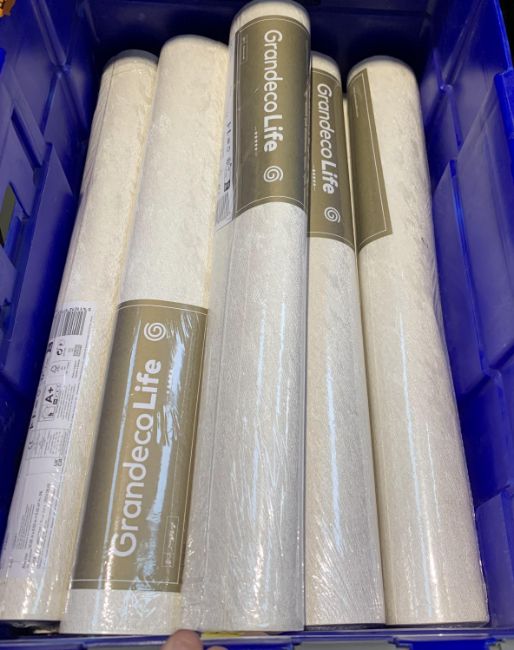 Twelve as new Grandeco Life Rolls - Glitter Plush Cream - 10.05m x 0.53 = 5.32 m2 (+/-3%) Per Roll, Sealed (A14001).