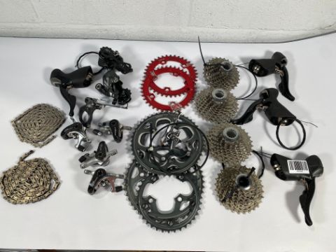 Pre-owned Cyclocross Drive and Braking Components to include two pairs Shimano Ultegra 10 speed cable operated gear/brake levers, two Shimano Ultegra RD 6700 rear derailleurs, two Shimano FD-CX70 front derailleurs, four Shimano Ultegra CS-6700 10 speed 2 x 11-28 and 2 x 12-30 cassettes, two pairs Shimano 46-36 5 bolt front chainrings, two pairs TRP Spyre SLC aluminium/carbon fibre cable operated disc brake calipers, two Superstar Components 38T chainrings, 5 bolt fitting.