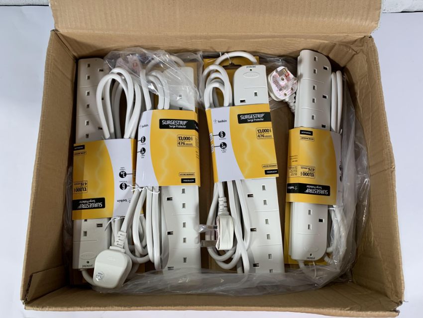 Eight Belkin 6 socket, 3 meter cable, surgestrip protected extension Leads (F9E600UK3M).