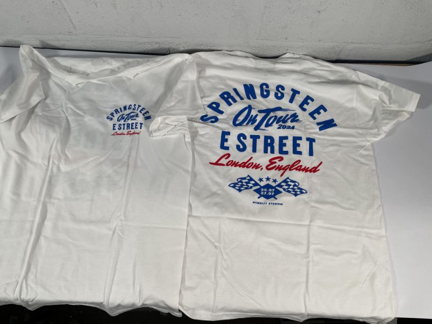 As new Bruce Springsteen E Street London 2024 Tour T-Shirts (approximately 70, various sizes) - White.