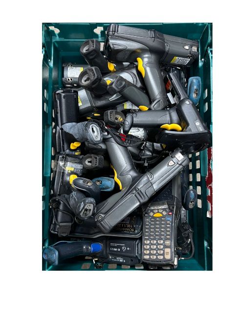 Sixteen assorted pre-owned Intermec & Motorola handheld terminals.