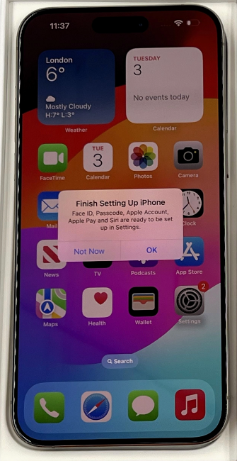 As new Apple iPhone 15 Pro Max (Global/A3106) 256GB in Natural Titanium (Box open, USB-C cable included) (https://www.checkmend.com/uk/verify/CM20508996-E77F6).