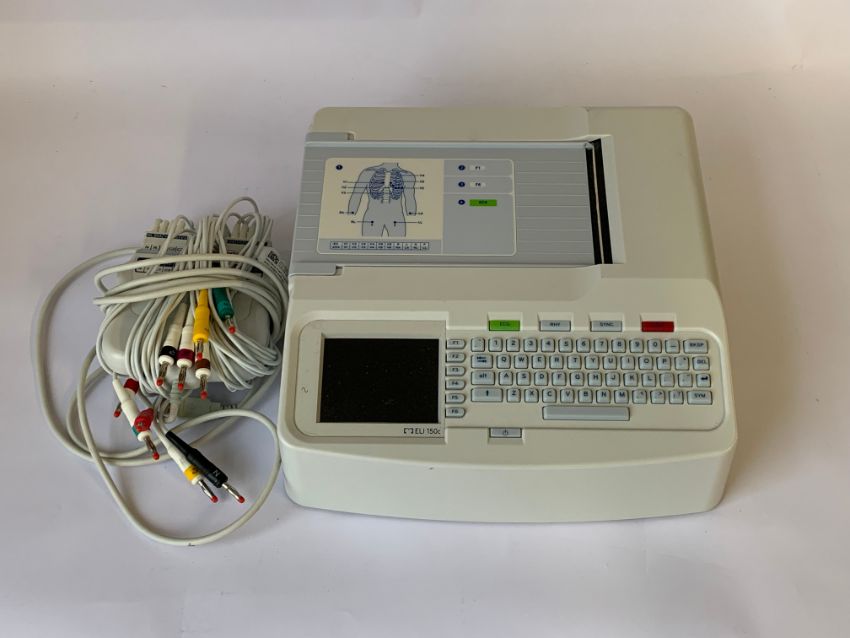 Pre-owned Mortara Eli 150c Resting Electrocardiograph (ECG) with some cables.