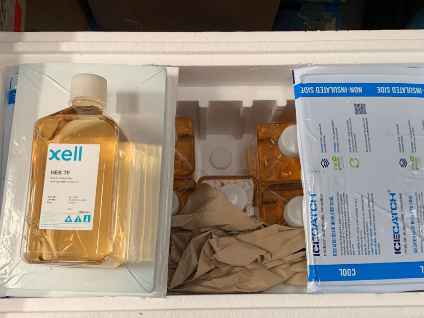 Ten bottles of Sartorius HEK TF liquid PET bottle 1000ml. As New (EXP: 25/02).