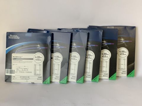 Two Boston Scientific NC Emerge Mono Rail PTCA Dilatation Catheters, 4.00mm, 15mm (REF: H749 392761540 0 , EXP: 2025-05-18) and Four Boston Scientific NC Emerge Mono Rail PTCA Dilatation Catheters, 4.00mm, 12mm (REF: H749 392761240 0 , EXP: 2025-04-02). As New.