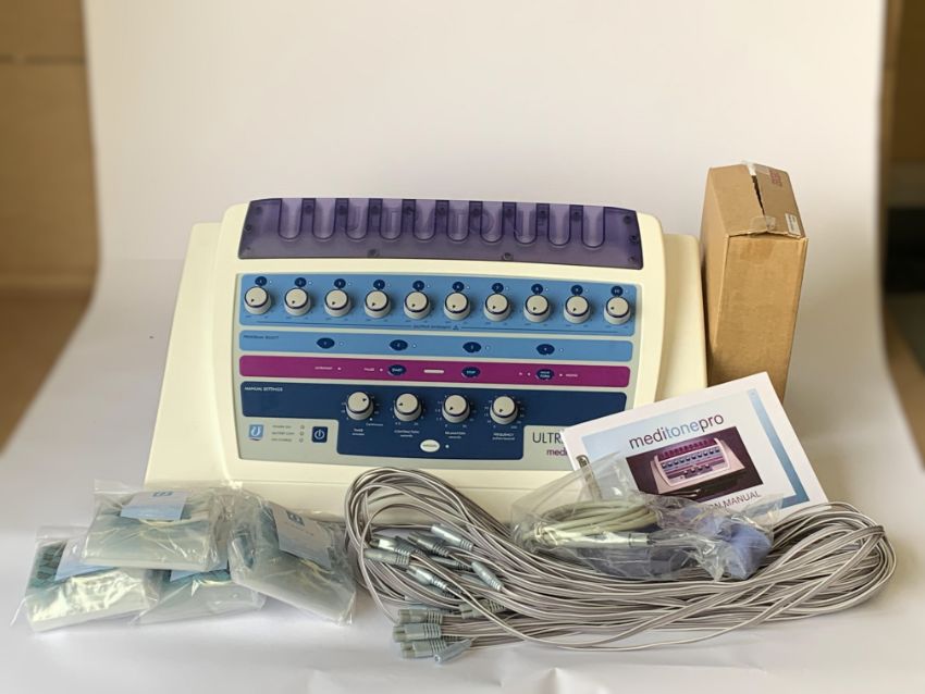 An Ultratone Meditone Pro Body Shaper Machine, Includes Some Cables, Accessories and Instruction Manual. Requires UK Power Adapter.
