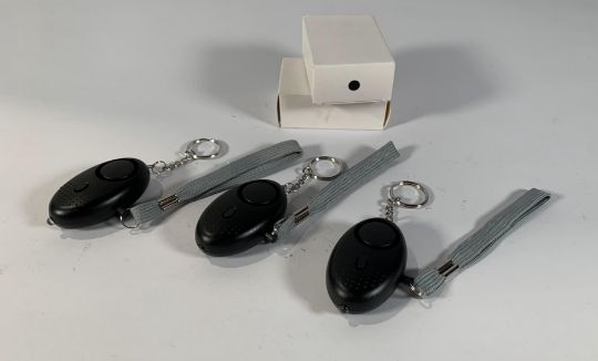 A quantity of Personal Safety Alarms 140 DB with LED Torch Light, Black, As New. Some unboxed (approximately 80).