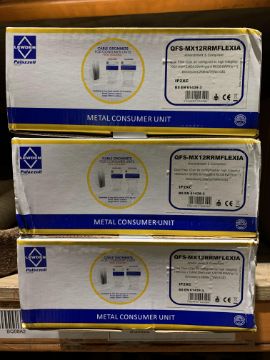 Three Lewden Metal Consumer Units, Dual Flexi 100A m/s+ 2x80A 30mA Type A RCCB 6 Ways (+1) 268H x 276W x 103D (QFS-MX12RRMFLEXIA) Boxed.
