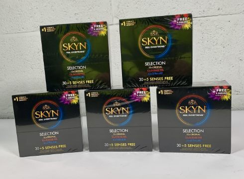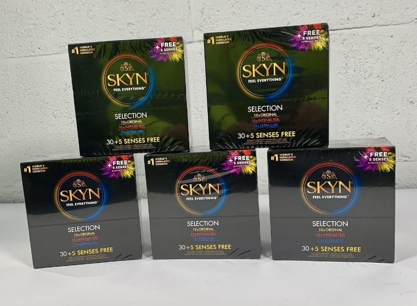 Five boxes of Skyn Selection Non Latex Condoms (35 per box) EXP 05/2025 (over 18's only).