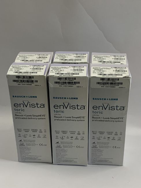 Six Bausch + Lomb enVista Toric with The Bausch + Lomb SimplifEYE Pre-Loaded Delivery Systems (REF: MXPTC125+145, EXP: 2026-01-31). As New.