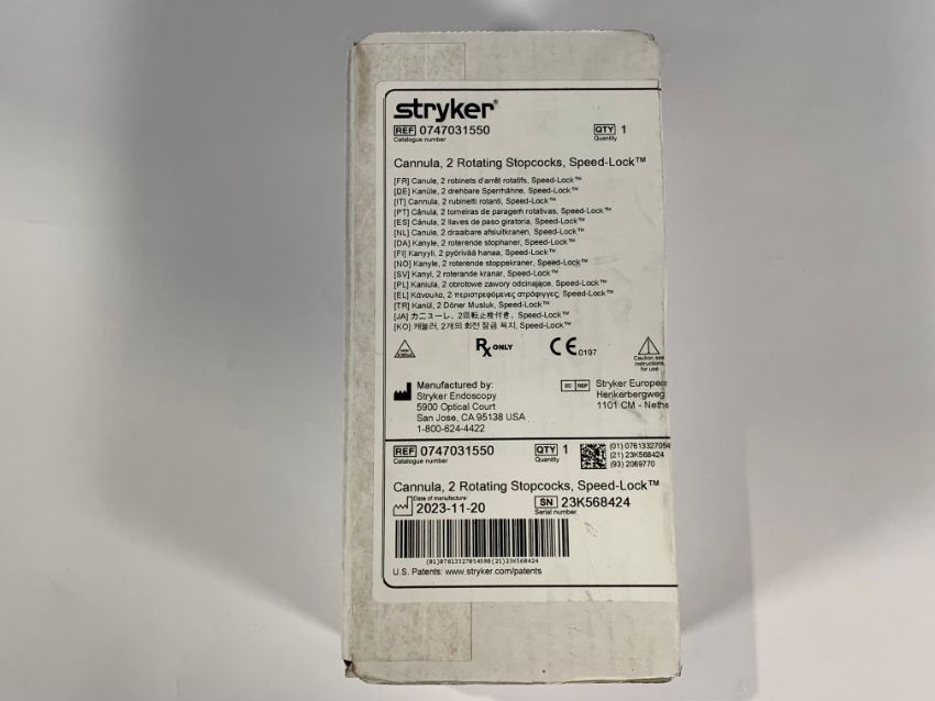 As new Stryker, Cannula 2 Rotating Stopcocks, Speed-Locks 5.8mm (REF: 0747031550) (DOM: 23/11/20).