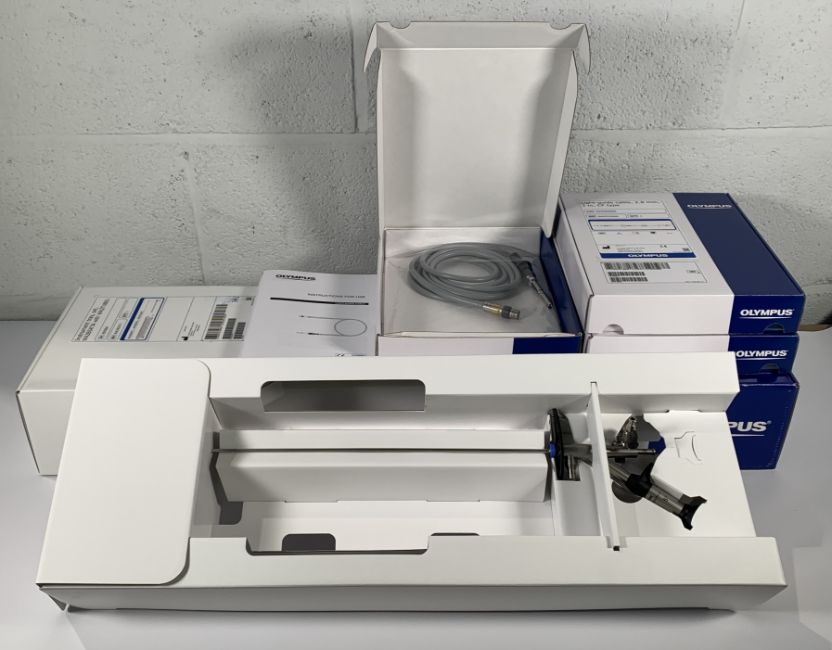 Olympus Ureteroscope 6.7/8.4, 430mm, 5° angled ocular 4.2fr (REF:WA2UR11A) with 3x Light-guide cable 2.8mm, 3m, CF Type (REF: WA03300A) and Instrument Tray Set (REF: WA2BSKT1). As New