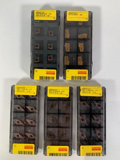 Five packs of assorted Sandvik Coromant CNC/Lathe Carbide Inserts (10 Per Pack) As New.