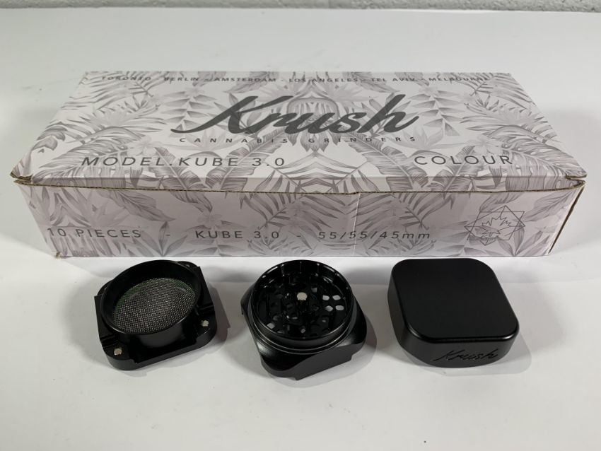 Ten Krush Cube 3.0 Cannabis Herbal Grinders/Paraphernalia, Black, 3 Piece Magnetic Sections, 55/55/45mm, Some Outer Boxes May Have Slight Damage.