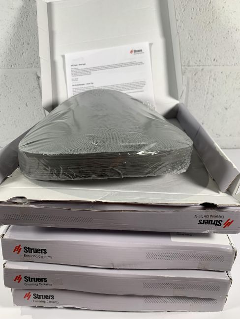 Five Packs Struers SiC Foil #1200 For Wet Grinding, Size 300mm Dia (Approximately 100 Pieces Per Pack) Boxes Opened.
