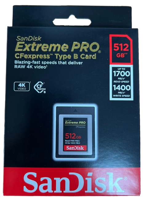 As new SanDisk 512GB Extreme PRO CFexpress Type B Card (EAN: 619659180881).