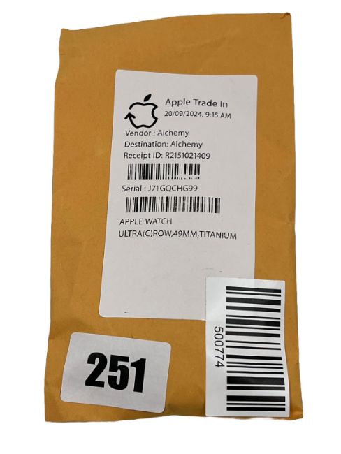 Pre-owned Apple Watch Ultra GPS (A2684) 49mm in Natural Titanium (S/N: J71GQCHG99).