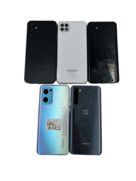 Five pre-owned Smartphones to include Samsung, Oppo & OnePlus (Some cosmetic damage, Google account clear) (Sold as seen).