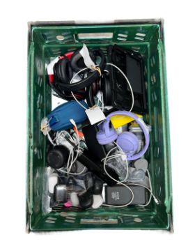 Assorted pre-owned items including headphones, charger packs and other items (All items sold as seen),