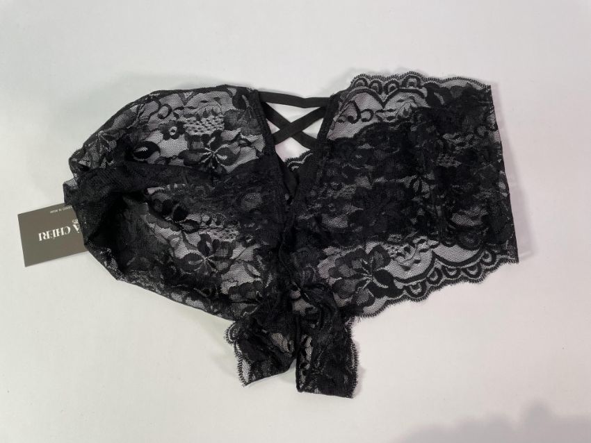 Twenty Oh La La Paris Goodnight Kiss Lace Crotchless Boyshort 2025 (With elastic detail) - Black - L/XL.
