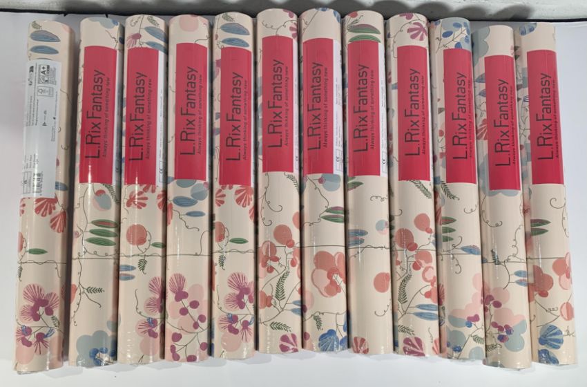 Twelve L.Rix Fantasy "Broad Bean" Design Rolls of Wallpaper, Approx 10.05m Length / 5.2sq m area Per Roll, Sealed, New.