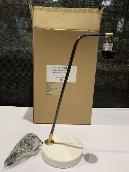 Chelsom Lighting Rock Desk Lamp, Marbal/Brass Effect Base, 60W type A Fitting (Bulb Not Included) Approx Height 52cm, Non Uk 3 Pin Plug. New. (DL/16/16242)