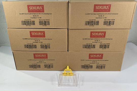 One hundred and twenty Sekura Dual AM/RF Oyster Security Tags (6 boxes) Internal Dimensions 101x 110 x 29mm Superlock (8OT12SL).