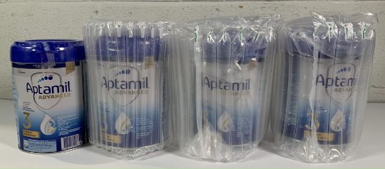 Four Aptamil Advanced 3 (1-3 Years Toddler Milk) Sealed Tins, some dented (B.B.E 15-02-2025).