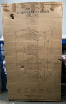 DrySoon Deluxe 3-Tier Heated Clothes Airer with Timer Function, Thermostatically Controlled Heat. Box damage/opened.