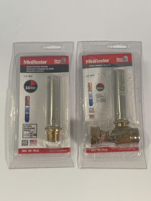 Twelve Sioux Chief DW660-H Water Hammer Arrestor 3/4" BSP Connections and Twelve Sioux Chief DW660-2J Water Hammer Arrestor 1/2" BSP. As New.