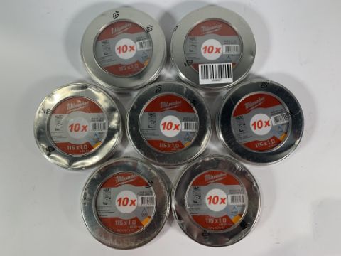 Seven Packs of Milwaukee Thin Metal Cutting Discs (10 Units Per Pack - Total of 70 Discs) 115 X 1,0 (Some Outer Packaging Slightly Marked) (4932478997)