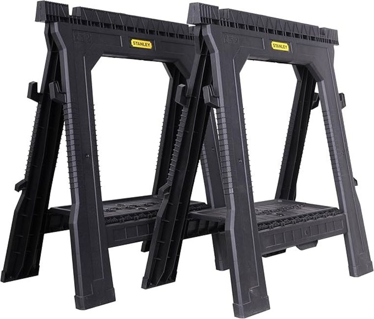 Three Stanley STST1-70713 Folding Saw Horse - Twin Pack - New (stock image).