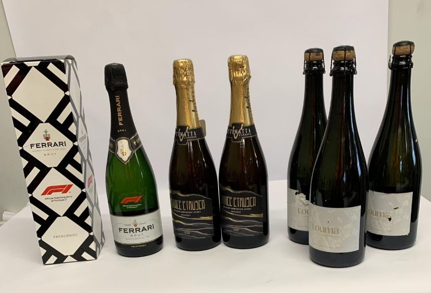 Two Radice Etrusca – Asprinio Spumante Doc Aversa Classico Millesimato Extra Brut Pas Dosè 2 x 750ml and one Ferrari Official Sparkling Wine 750ml, three Louma 2020 Special Cuvee English Sparkling Wine 3 x 750ml (Labels Slightly Distressed).