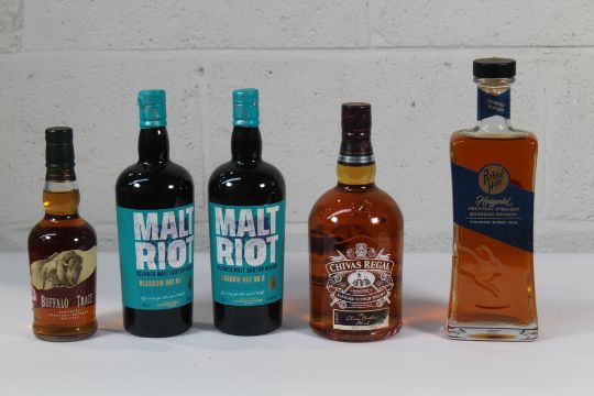 Buffalo Trace Kentucky Straight Bourbon Whiskey 375ml, Chivas Regal Blended Scotch Whisky 1ltr, Heigold Kentucky Straight Bourbon Whiskey 700ml And Two Malt Riot Blended Malt Scotch Whisky 2 x 700ml