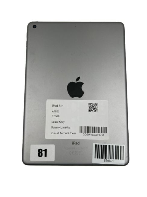 Pre-owned Apple iPad 5th Gen (A1822) 128GB in Space Gray (iCloud unlocked) (S/N: GCGW4DGSHLFD).