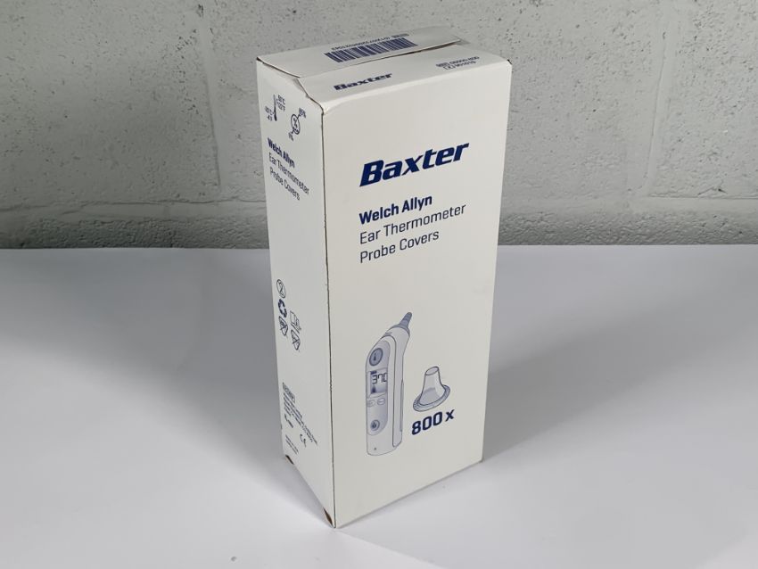 Sixteen boxes of as new Baxter Welch Allyn Ear Thermometer Probe Covers (800 per box).