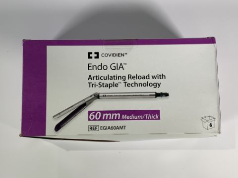 Box of Six Covidien Endo GIA Articulating Reload with Tri-Staple Technology, 60mm Medium/Thick (REF: EGIA60AMT) As new (EXP: 2029/01/31)
