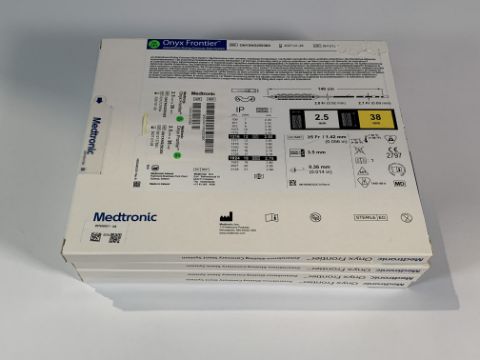 Four Medtronic, Onyx Frontier Zotarolimus-Eluting Coronary Stent System, 2.75mm x 12mm (ONYXNG27512X), 2.0mm x 18mm (ONYXNG20018X), 3.5mm x 26mm (ONYXNG35026X), 2.5mm x 38mm (ONYXNG25038X) As New (EXP: 27/01/28).