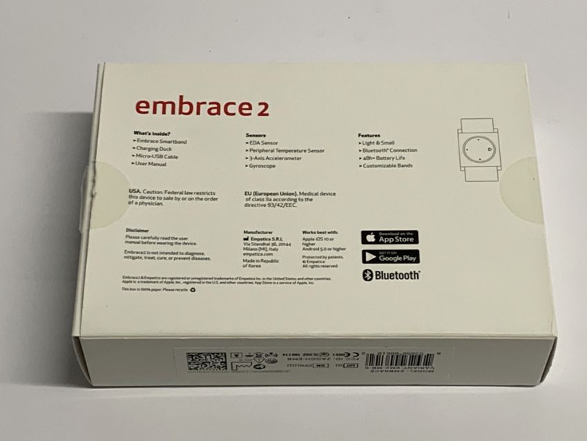 Empatica Embrace2 Epilepsy Sensor (EM2-MB-S). As New.