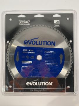 As new Evolution M355TCT-66CS Steel Cutting Blade 355mm x 25.4mm x 66T, Ultra High Grade Carbide Teeth, packaging slightly damaged.