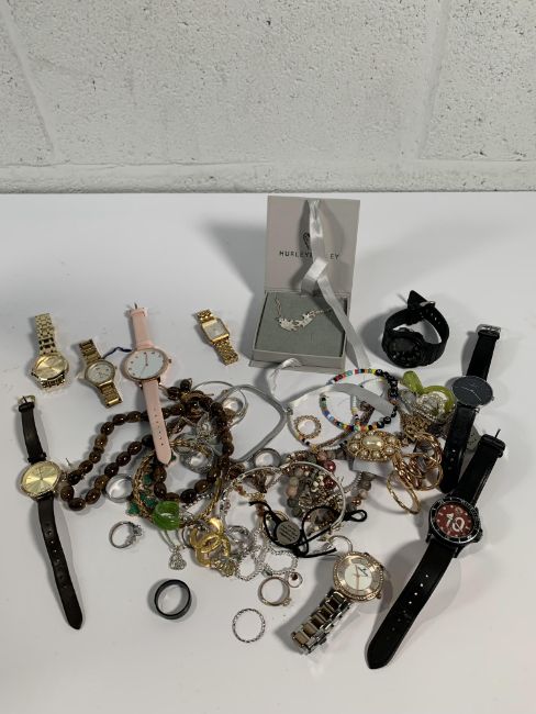 A quantity of pre-owned costume jewellery together with nine wrist watches.