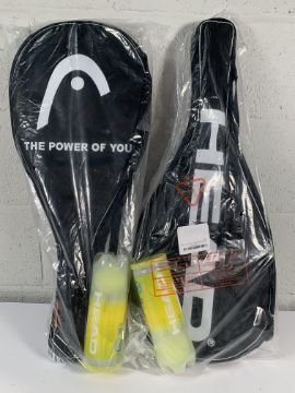 Two as new Head Ti S2 titanium tennis rackets including cases and packs of three balls.