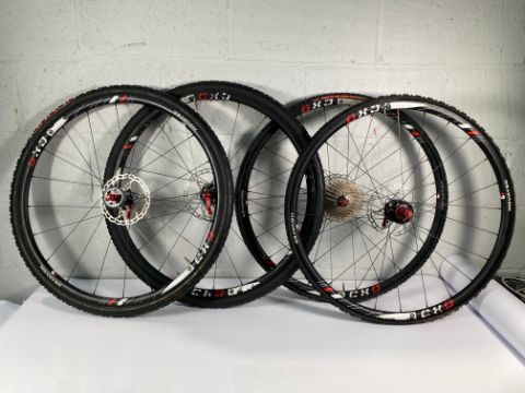 Pre-owned Cyclocross Wheels; Two pairs of Novatec CXD aluminium tubular disc brake fitted with Vittoria 'Tubs' (Tubs may need repairing/replacing), Ø 160mm rotors, Hope quick release skewers, one has Shimano Ultegra 11 speed cassette c/w wheel bags.