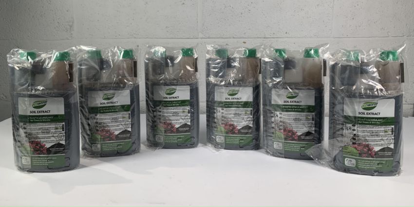 Six as new EcoWorm Soil Extract Growth Stimulants for Tree and Shrubs, pet and child safe, 1L concentrate bottles.